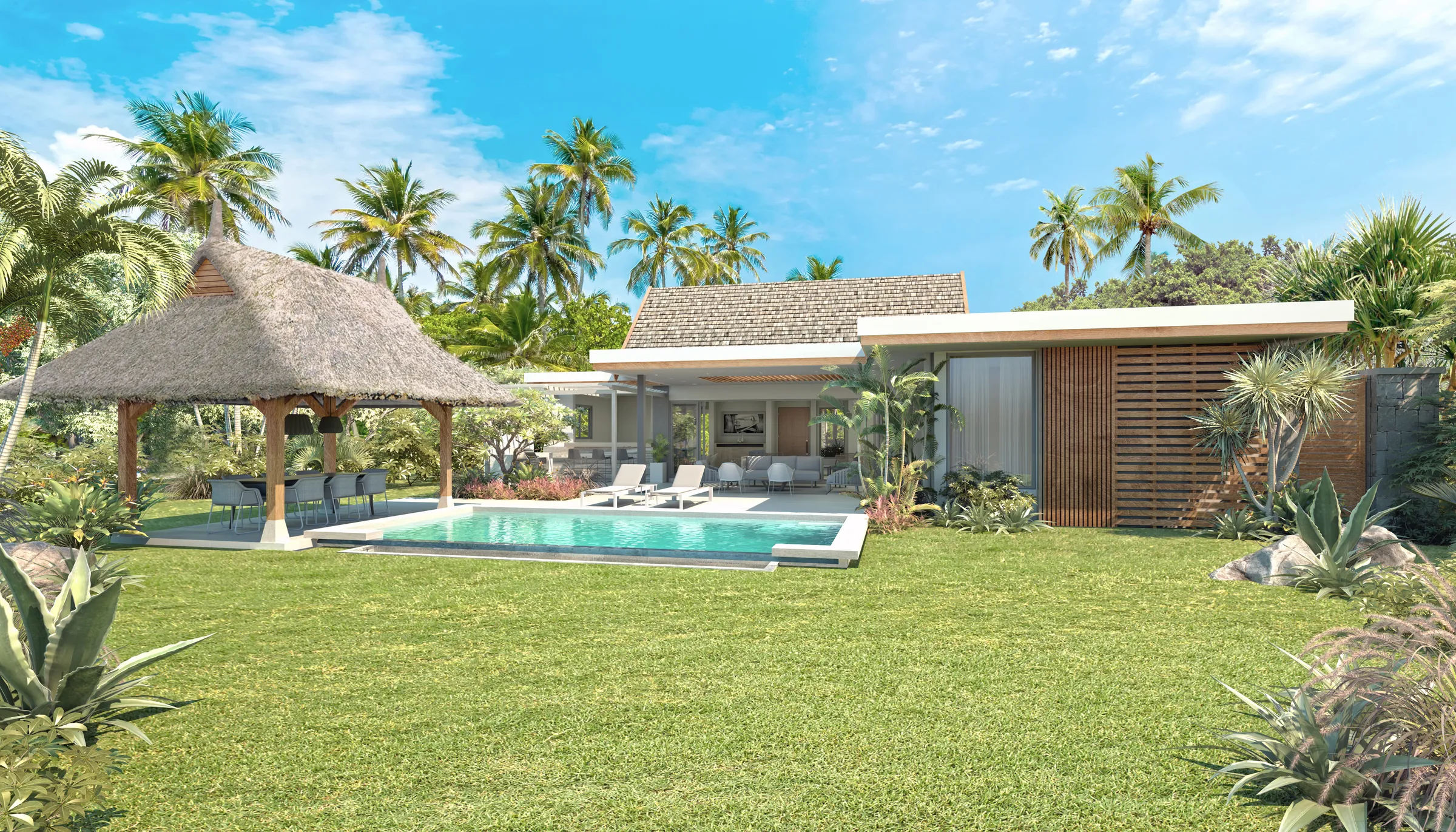 Step into this inviting three-bedroom villa, where outdoor living takes center stage. A large, tree-filled garden surrounds the villa, offering a peaceful retreat and plenty of space for relaxation and gatherings. The barbecue area is perfect for enjoying meals with family and friends, while the pool and shaded spaces provide moments of calm and leisure throughout the day. Inside, the villa features a generous master suite and two comfortable bedrooms, designed to offer privacy and restful comfort. The interiors are elegantly crafted with a focus on natural light, flowing spaces, and subtle touches of Mauritian charm, creating a home that feels both sophisticated and welcoming. Beyond the villa, residents enjoy a variety of amenities to enhance daily life, including a fully equipped sports center, an exclusive Beach Club, cafés, boutiques, restaurants, offices, and a school. This home blends comfort, style, and a connection with nature, offering an authentic island lifestyle in a serene and private setting.